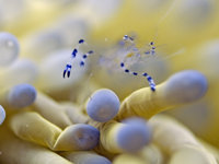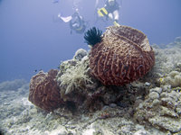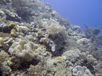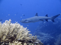 The resort offers three dives per day and five meals, which are really excellent and you run the risk of growing very fat. I'd liked to have a fourth dive in the afternoon, it would have fit the schedule nicely, but they don't offer this. You can do night dives in the lagoon, but they are not really exciting. There is not a lot to do after the last dive, since the island is rather small; there is no useable beach and when it is raining (as it was when I was there), you can't even use the pool. Another drawback is that because the island is reached by air, you have to stop diving a day before your return flight (even if you want to risk it - the plane is flying at low altitudes only and my Smartcom would only want about 18 hours no-fly-time anyway - they won't let you) so at the end you basically hang around doing nothing for a full day.