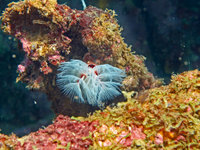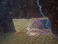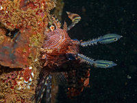The wreck of a japanese patrolboat was in some depth. Due to the bad visibility (peasoup quality), I could not use the flash, and due to the great depth, there was not a lot of available light.