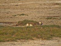 The Etosha National Park is the last area in Namibia where lions roam. They are one of the reasons why you should not leave your car outside fenced-in areas (if they want to, they are well hidden until you step onto their tails). Though lions tend to be lazy and, due to the abundance of antelope, well-fed, there are always stories about careless visitors. Lions learn quickly which species are easy to hunt and humans and domestic cattle are among the easy prey. There are ways to deal with lions, though: being big like an elephant or rhino helps, and springbok successfully confuse lions with their erratic jumps. Lions are wary of anything that doesn't run away. Observing a group of lions during daytime is not so interesting. They are a lazy bunch and just sleep a lot