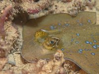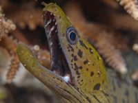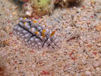 Bounty is the name of a sunk work platform or pontoon. It lies between 5m and 10m deep, is overgrown with corals in the meantime, and contains plenty of nooks and crevices for critters to hide. Also, since it is overturned, it has a cave-like interior. It is always full of interesting creatures and is an easy dive, also a good site for a night dive
