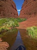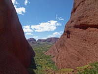 Near Uluru, Kata Tjuta ("The Olgas") is another famous sight in central Australia. It is a collection of rounded hills (Kata Tjuta means "many heads") and is believed to have been eroded from a rock like Uluru, but much bigger. It's about 40km from Uluru and the paved road from Alice Springs ends here - after Kata Tjuta, you need a special permit to continue westwards. And a special vehicle. From here, the road leads to Warrakurna and Warburton, to the Gunbarrel Highway - you're entering Diesel And Dust country