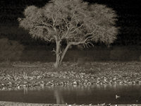 The Etosha national park is a large fenced-in area (more than 22.000 square km) around the so-called Etosha pan, a large salt basin. Gravel roads cross the park through different types of landscape (the map lists around 20 landscape types), and there are three camps about 80km apart from each other. We chose to stay in the waterhole chalets at Okaukuejo this time, which in our opinion is the nicest of the three camps.