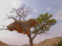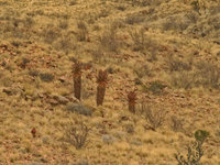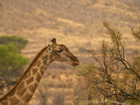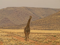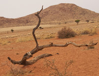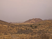 On the first day, we had breakfast at around 8:30 but at 7:20, staff already wanted to clean my hut! Most visitors leave early in the morning; Hammerstein is a cheap base to explore the Sossusvlei, only a two hours' drive by bus (this is very close in Namibian terms). So we were about the last people to get up and have breakfast. We went for a game drive into the veldt. There were not a lot of animals but the landscape was nice. In the end we were chased by a friendly giraffe, Stoffel, who liked people but couldn't properly judge his strenght when hugging them. The car was not overly reliable and tended to stop (and not start again), so this was a bit adventurous, but Stoffel got no opportunity to hug us