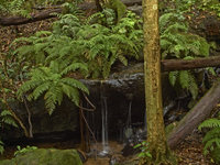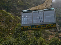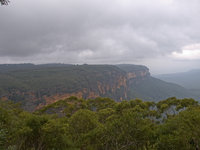 For decades, the blue mountains plateau to the west of Sydney blocked the settler's move westward, until finally passages through the mountains were found which were usable with carts. The area now is a local recreation area for Sydney, aswarm with holidaymakers over weekends and holiday seasons. Local tourism is the predominant industry. There are scenic views, waterfalls and jungle. The "Three sisters" are a famous rock formation - but we were there during heavy fog and could not see them