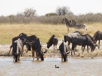 Namutoni is the camp closes to Von Lindequist gate. It has been built around a colonial age fort, which was more a sort of tourist trap though. Near Namutoni there is a small side pan of the Etosha pan, the so-called Fischer pan (this is not the name of a restaurant dish!), with a gravel path around it. Another track near Namutoni is the "Dikdik drive", but there were no dikdiks.