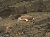 There are two seal colonies on Kangaroo Island, one of them at Cape de Couedic at the Southwestern corner of the island. New Zealand fur seals live in this colony. Fur seals are eared seals, as opposed to true seals which do not have ears. Eared seals have two hind flippers, which they can use for clumsy locomotion on land, whereas true seals have a single flipper and only use the fore flippers to move on land.