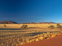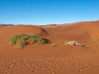 Sossusvlei is a valley in the Namib desert which contains the famous Dune 45 as well as the Deadvlei at it's end, a pan with dead vegetation. Sossusvlei is full of apricot coloured sand dunes and is the source of many pictures of Namibia (including the one in the standard Windows background collection). Since I prefer my scenery with living things in it, it is not my favourite place